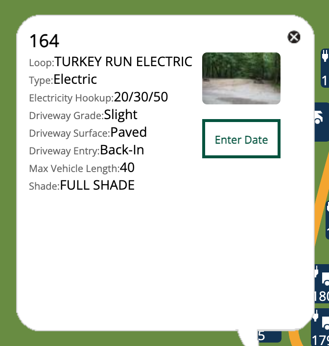 The grade of a site can be found on most site listings. For example, I went to the Indiana State Park page and found this site to the right. This spot is listed as a “slight” driveway grade. This means that there is a minimal slant to the drive.